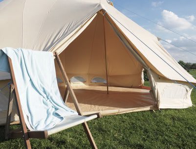 Wanneer je aankomt staat er telkens een comfortabele tipi voor jullie klaar! Standaard zijn de tenten voorzien van elektriciteit en een buitentafel met stoelen. Een slaapmatje en slaapzak nemen jullie zelf mee. Kies je voor de glamping versie (+ €50 p.p.) dan zijn de tenten voorzien van comfortabele bedden, een nachtkastje, kleed, lampen en beddengoed. Bedlinnen neem je zelf mee.