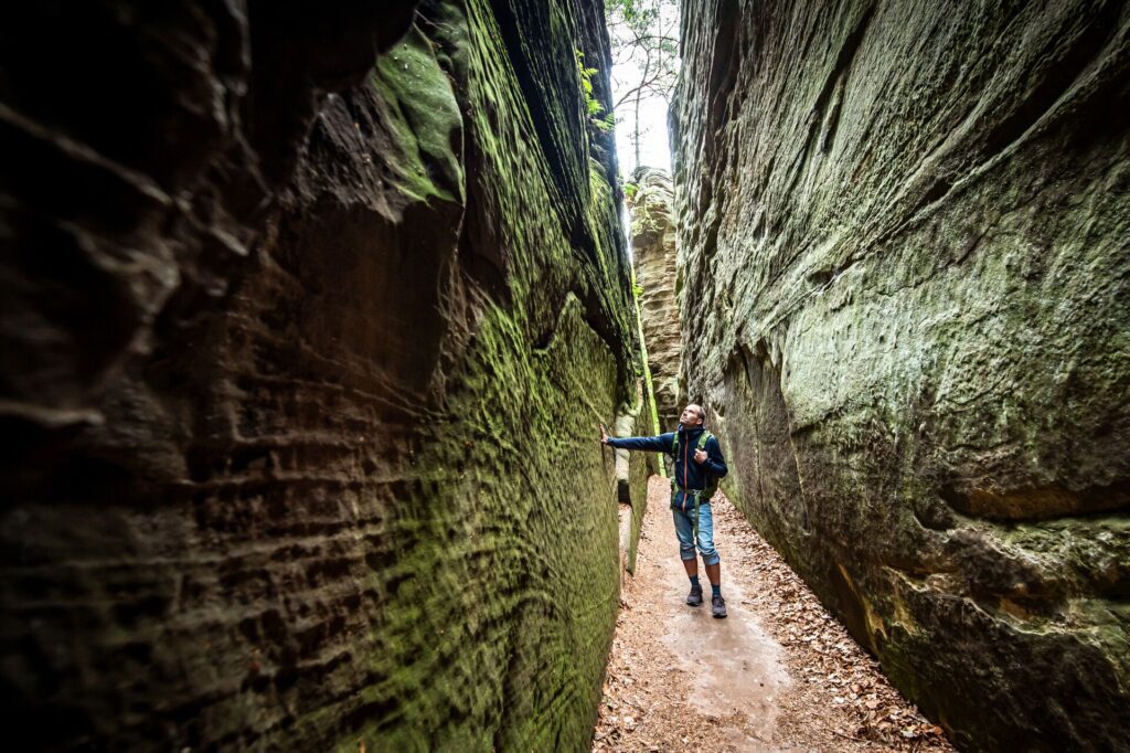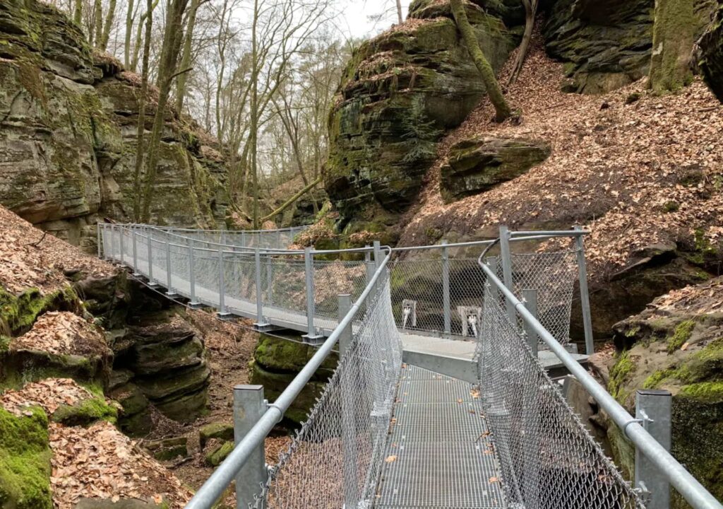 Je legt een prachtig stuk af van de beroemde Mullerthal Trail in Luxemburg, langs sprookjesachtige watervallen, groene valleien en dichte bossen. De regio wordt ook wel Klein Zwitserland genoemd vanwege haar glooiende landschap en indrukwekkende rotsformaties.