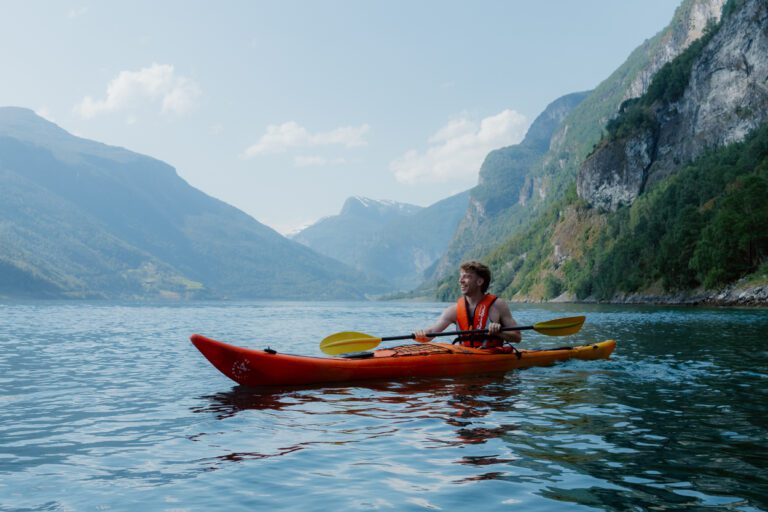 Gedurende 7 nachten en 8 dagen ga je op een unieke reis door de Noorse natuur. The Kayak Trip biedt twee kajakroutes: de Nærøy-route en de Aurlands-route. Deze routes bieden de mogelijkheid om tot 60 extra kilometers te hiken en zo het fjordenlandschap zowel vanaf het water als vanaf de bergen te verkennen. Vanop het water peddel je langs de spectaculaire fjorden en ervaar je de geschiedenis van deze regio waar ooit de Vikingen hun sporen achterlieten.